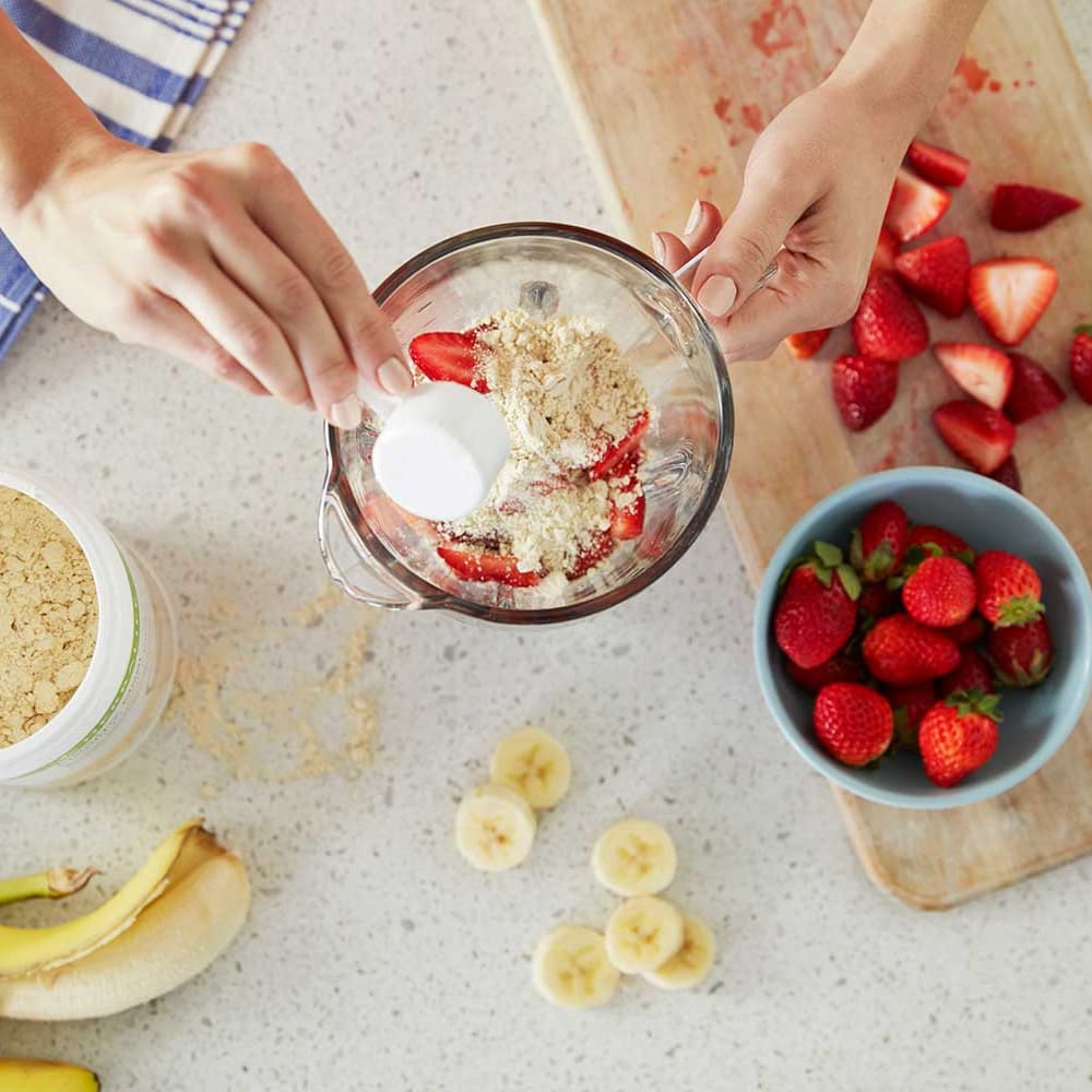 To wygodne rozwiązanie, gdy chcesz mieć stały zapas porcji i nie składać zamówień co kilka dni. Dwie puszki 550 g to zwykle 30–40 porcji (zależnie od przepisu i mleka/napoju), więc łatwiej utrzymać plan śniadaniowy lub posiłek „to-go”. Dwupak sprawdzi się też, gdy przygotowujesz koktajl w domu i w pracy – jedną puszkę możesz trzymać w biurze.